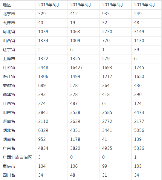 据博思数据发布的大气污染防治设备市场分析报告中,2019年上半年全国各省市大气污染防治设备产量数据统计如下: