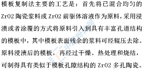 氧化锆是一种独特的氧化物,不仅具有酸性中心和碱性中心,还具有氧化性和还原性,与催化剂活性组分容易产生较强的相互作用。多孔ZrO2陶瓷可以用做一种优良催化剂和催化剂载体。利用全稳定氧化锆具有较高的氧离子电导率的特性,可以实现ZrO2多孔陶瓷在氧传感器和固体燃料电池电介质等功能材料领域中广泛应用。