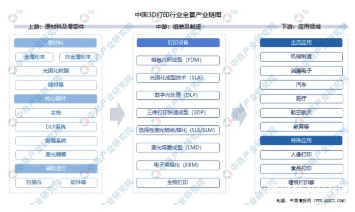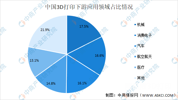 由于3D打印技术具有降低技术、提高生产效率、优化质量等优势,中国制造企业积极引进3D打印,替代或替代。改进原有的生产方式提高了企业生产的降低水平。
