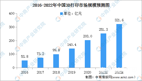 中国3D市场规模从2011年的53.8年募集到2063年的203亿美元,年均复合其利达打印出339.37%。未来在政策等因素驱动下,2022年市场规模将增长到321.6亿元。