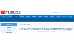 关于2020年中国稀土学会杰出工程师奖获奖候选人的公示